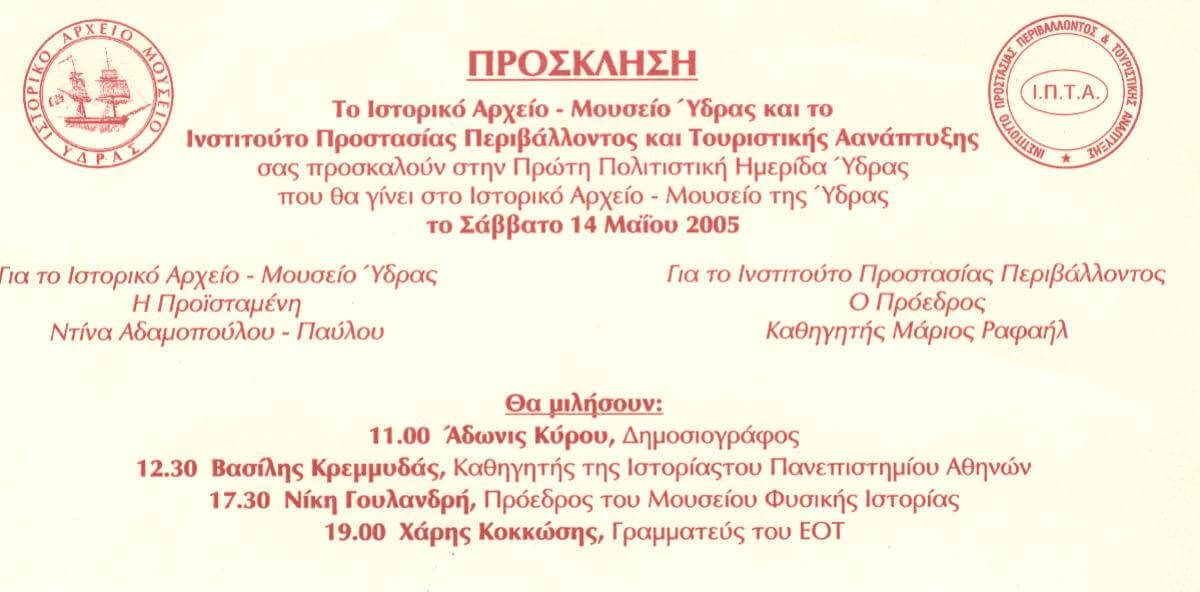 Σεμινάριο που διοργανώνει η Ν.Ε.Λ.Ε. της Νομαρχίας Πειραιά σε συνεργασία με το Ι.Α.Μ.Ύδρας με θέματα : α) Θεατρικό Παιχνίδι, β)Ζωγραφική, γ)Συμβουλευτική Γονέων.