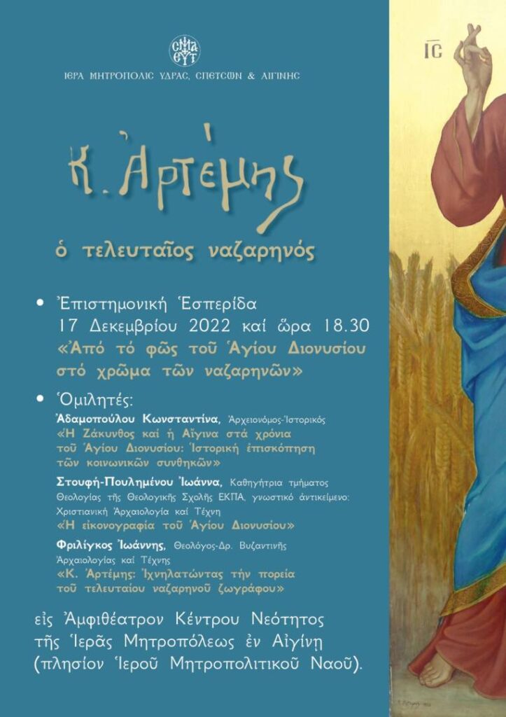 Τετρακόσια χρόνια συμπληρώνονται φέτος από την κοίμηση του Αγίου Διονυσίου, Αρχιεπισκόπου Αιγίνης, του Ζακυνθίου, και η Ιερά Μητρόπολη Ύδρας, Σπετσών και Αιγίνης, διοργανώνει μια σειρά από […]