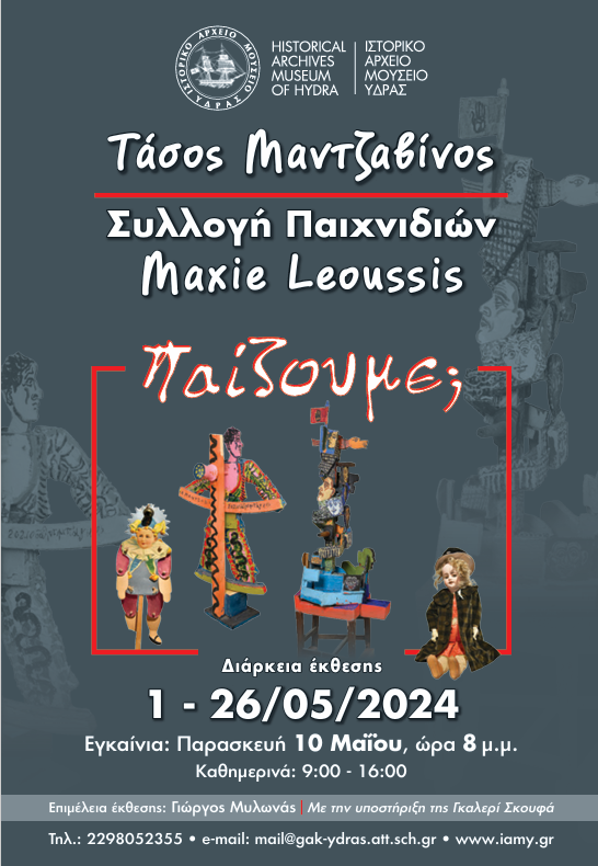 Ένα ταξίδι στην παιδικότητά μας με όχημα τη συλλογή παλιών παιχνιδιών που πρόσφατα απέκτησε το Ιστορικό Αρχείο – Μουσείο Ύδρας και μια σειρά ζωγραφικών έργων και κατασκευών του Τάσου […]