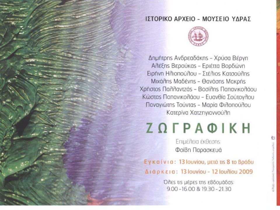 Διάρκεια έκθεσης 18 Ιουλίου έως 19 Αυγούστου