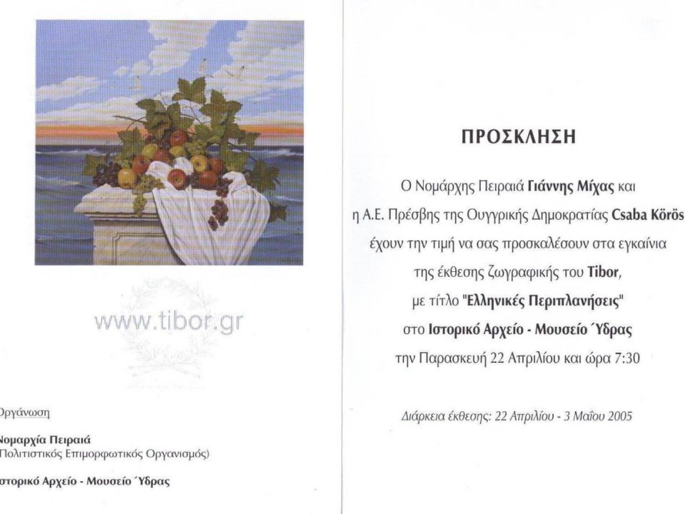21 Οκτωβρίου, 2014Published by efstraatios at 21 Οκτωβρίου, 2014Categories 2005 Εικαστικές Εκθέσεις Εκθέσεις ΑρχειοΈκθεση ζωγραφικής Fulop Tibor «ΕΛΛΗΝΙΚΕΣ ΠΕΡΙΠΛΑΝΗΣΕΙΣ» [Υπό την αιγίδα της Πρεσβείας της Ουγγρικής Δημοκρατίας] 22 ΑΠΡΙΛΙΟΥ – 3 ΜΑΪΟΥ 2005