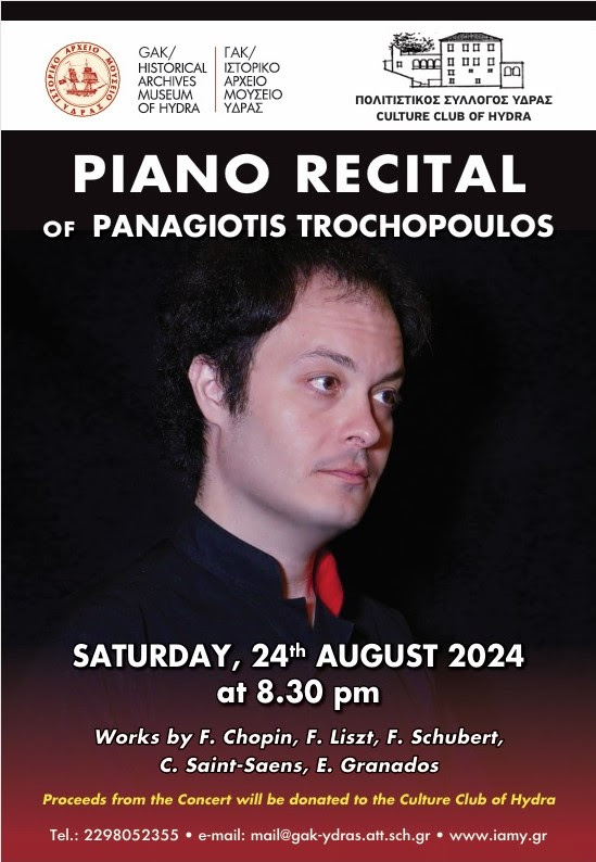 ΣΤΑ ΓΑΚ/ΙΣΤΟΡΙΚΟ ΑΡΧΕΙΟ – ΜΟΥΣΕΙΟ ΥΔΡΑΣ Στις 24 Αυγούστου 2024 , πραγματοποιείται στην αίθουσα εκδηλώσεων «Διονύσιος & Ίνγκριντ Κουντουριώτη» των ΓΑΚ / ΙΑΜΥ μία μοναδική μουσική βραδιά με έργα του διεθνούς […]