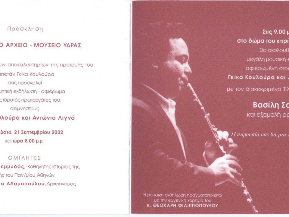 3 Νοεμβρίου, 2014Published by efstraatios at 3 Νοεμβρίου, 2014Categories 2002 Μουσικές Εκδηλώσεις Μουσικη ΑρχειοΤιμητική μουσική εκδήλωση – αφιέρωμα στους συνιδρυτές του Ι.Α.Μ.Υδρας , ΓΚΙΚΑ ΚΟΥΛΟΥΡΑ & ΑΝΤΩΝΙΟ ΛΙΓΝΟ με τον ΒΑΣΙΛΗ ΣΑΛΕΑ και εξαμελή ορχήστραΑποκαλυπτήρια της προτομής του ιδρυτή του Ι.Α.Μ.Υ. Γκίκα Κουλούρα Τιμητική μουσική εκδήλωση – αφιέρωμα στους συνιδρυτές του Ι.Α.Μ.Υδρας , ΓΚΙΚΑ ΚΟΥΛΟΥΡΑ & ΑΝΤΩΝΙΟ ΛΙΓΝΟ με τον […]