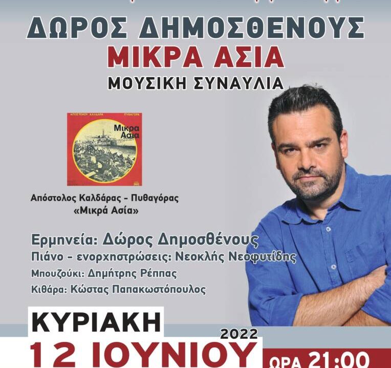Σας προσκαλούμε όλες και όλους στη Μουσική Συναυλία με τον εξαίρετο ερμηνευτή Δώρο Δημοσθένους και την ορχήστρα του, την Κυριακή 12 Ιουνίου 2022, στις 9.00 το […]