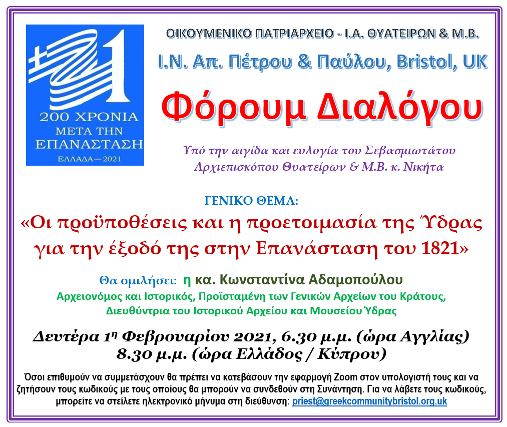 Το Ιστορικό Αρχείο – Μουσείο Ύδρας, τιμώντας την 200η Επέτειο από την Ελληνική Επανάσταση, με χαρά αποδέχθηκε την πρόσκληση συμμετοχής στο Φόρουμ Διαλόγου, το οποίο τελεί […]