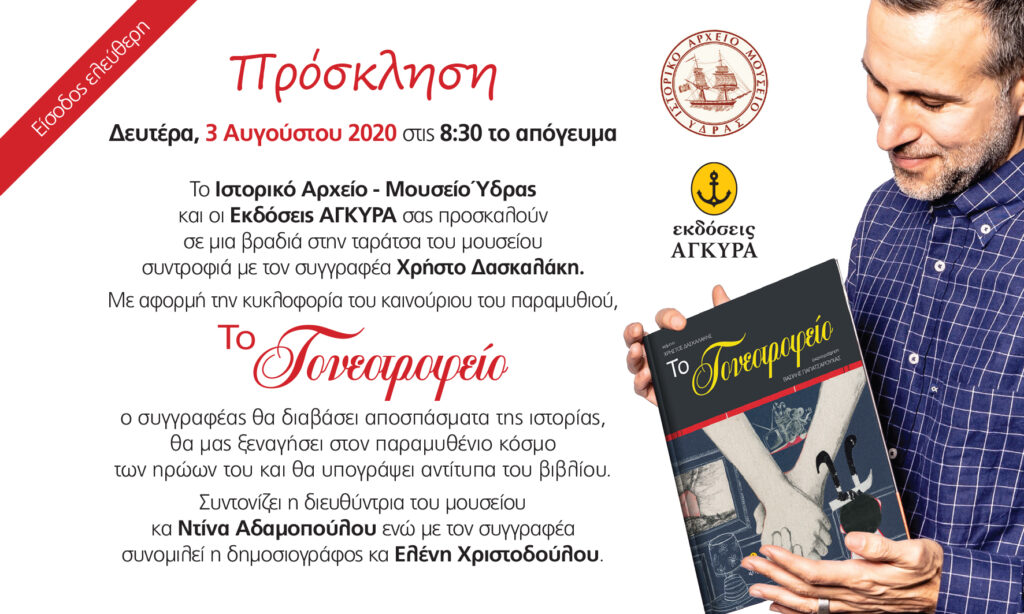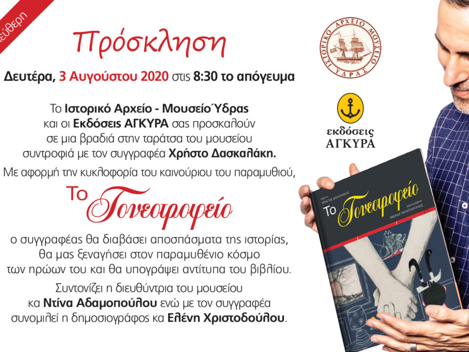 Το Ιστορικό Αρχείο – Μουσείο Ύδρας, στηρίζοντας πάντα τις προσπάθειες νέων ανθρώπων που ευαισθητοποιούνται σε κοινωνικά θέματα, παρουσιάζει το νέο βιβλίο του Υδραίου συγγραφέα Χρήστου Δασκαλάκη. […]