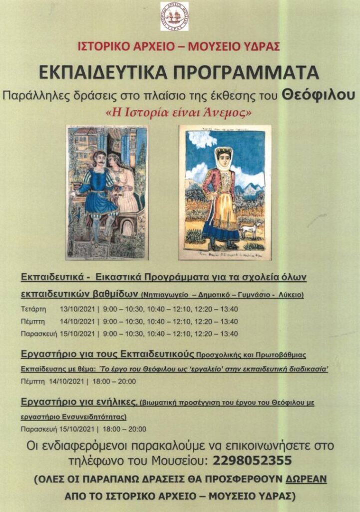 Στο πλαίσιο της έκθεσης του Θεόφιλου «Η Ιστορία είναι άνεμος…», που παρουσιάζεται στο Ιστορικό Αρχείο – Μουσείο Ύδρας από τις 4 Σεπτεμβρίου έως τις 15 Οκτωβρίου […]