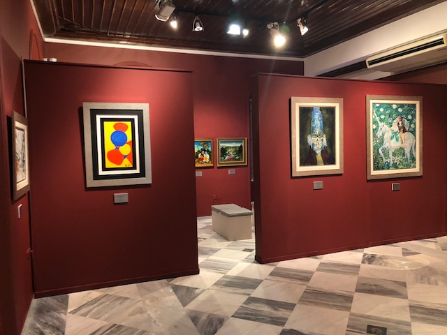 ” L’ART CONTEMPORAIN RENCONTRE L’ART NAÏF À HYDRA” : Il s’agit de 28 œuvres, dues à 20 artistes de 8 pays.