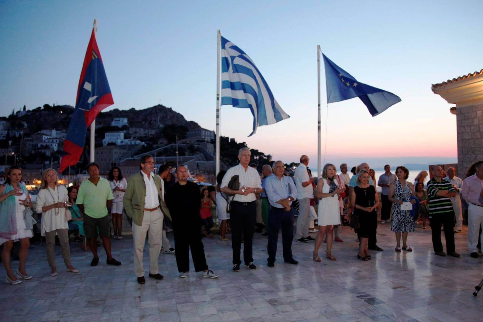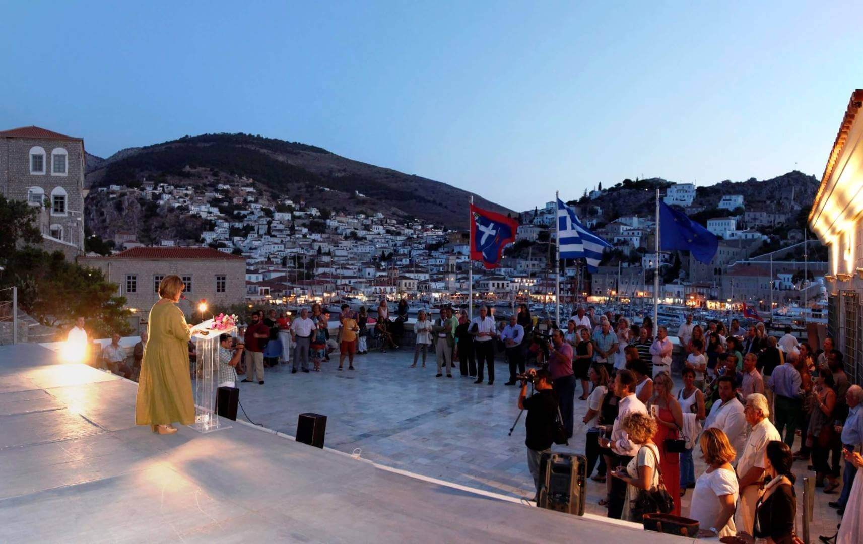 - Από αριστερά: Didier Guillon, Isao Artigas, Δήμαρχος Ύδρας Α. Κοτρώνης, Πέτρος Κλαδάκης, Marylise Sauliere, Μαρία Κλαδάκη.