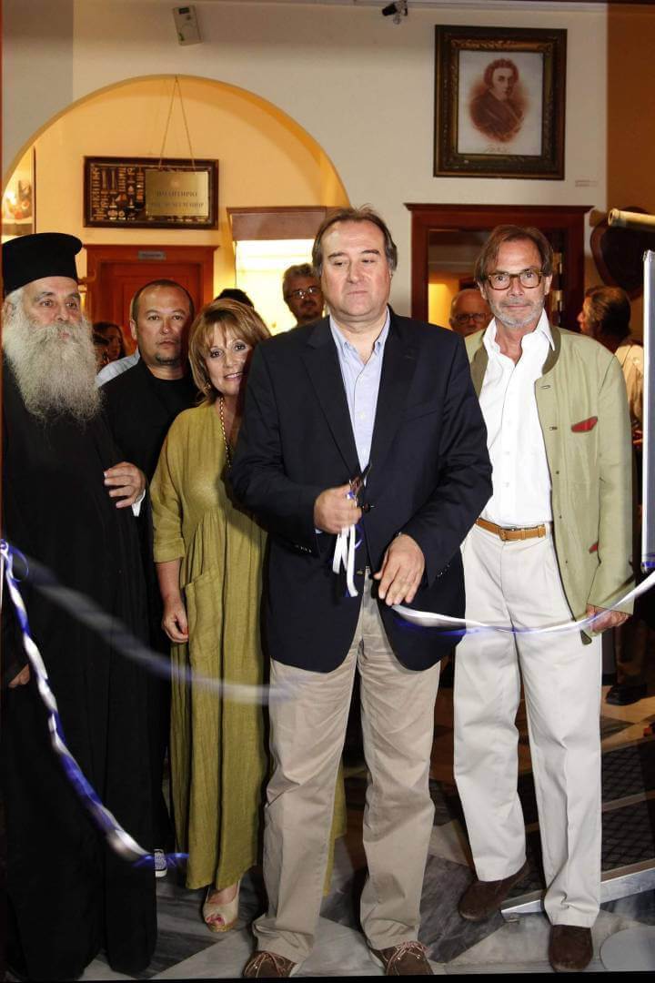 - Ο αιδεσιμ.π. Ιωαννίκιος Καλαφάτης και ο Πρόεδρος του ΕΟΤ κ. Χρήστος Πάλλης εγκαινιάζουν την έκθεση.