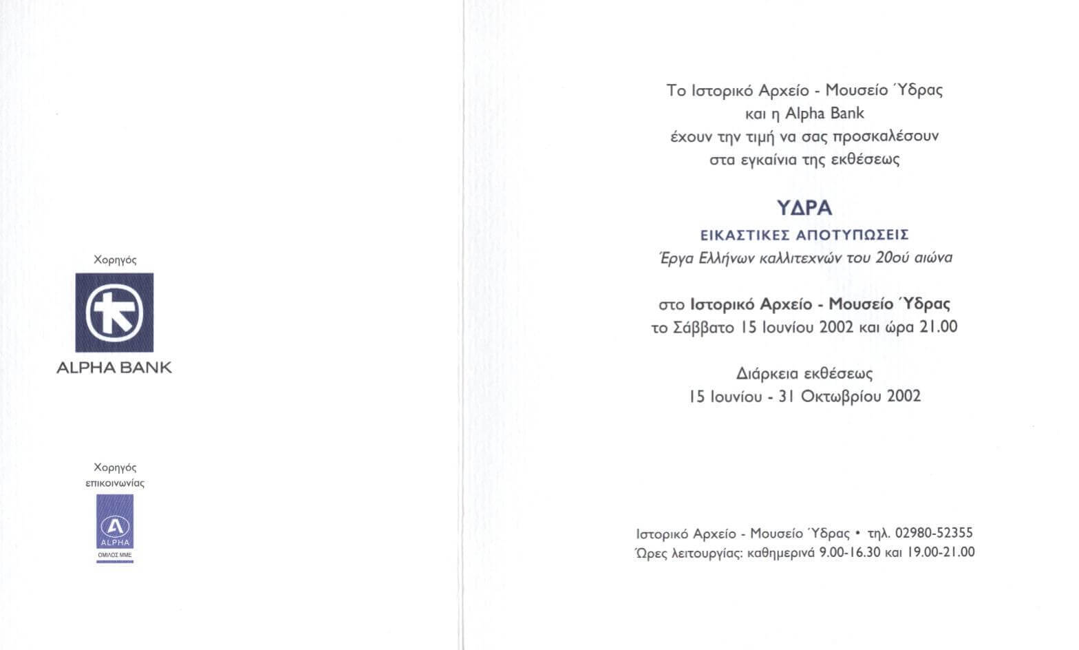 Έκθεση ζωγραφικής «ΥΔΡΑ ΕΙΚΑΣΤΙΚΕΣ ΑΠΟΤΥΠΩΣΕΙΣ» Έργα 48 Ελλήνων καλλιτεχνών του 20ου αιώνα
