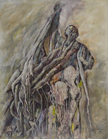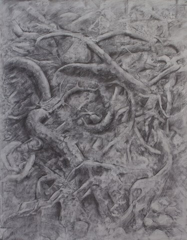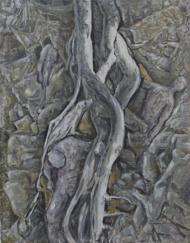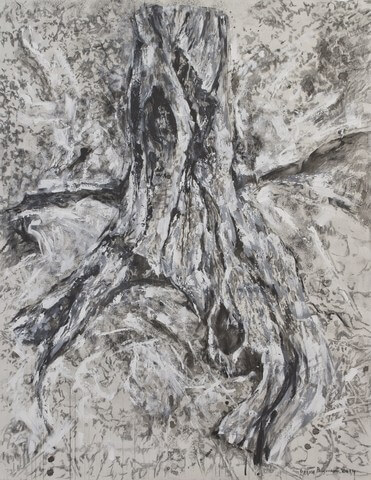 Η θεματική ενότητα «Ρίζες-Roots» της Βαζούκου έχει δημιουργηθεί τα 5 τελευταία χρόνια και είναι η πρώτη φορά που παρουσιάζεται στο σύνολό της σε αίθουσα Τέχνης.