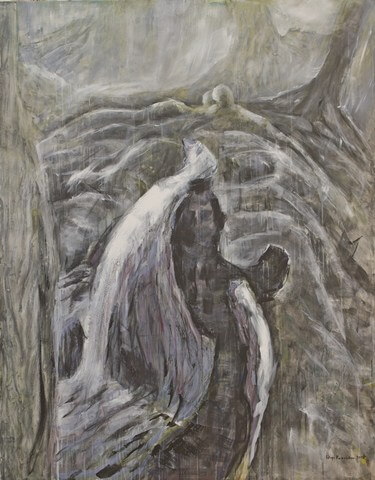«….Η ψυχή στη διάρκεια των αιώνων έχει προκαλέσει ατέρμονους διάλογους και διαξιφισμούς. Στο απόλυτο αυτό διανοητικό ερέθισμα και το μέγα ερωτηματικό όλων των εποχών, η Bαζούκου, μέσα από τη προσωπική της μελέτη, κρατεί το απόσταγμα της δικής της Α-λήθειας. Γέννηση και θάνατος και ίσως μια αναγέννηση. Μια επαναφορά….Η Βαζούκου πλέκει και πλάθει και απλώνει χρώμα στους προβληματισμούς της. Και το αποτέλεσμα δεν είναι φυσικά, απαντήσεις( δε νομίζω άλλωστε ότι την ενδιαφέρει αυτό), αλλά ενδιαφέρουσες εικαστικές αναζητήσεις που φορτίζονται με συναίσθημα και αγωνία. Κάθε τέλος επωάζει μια αρχή…»