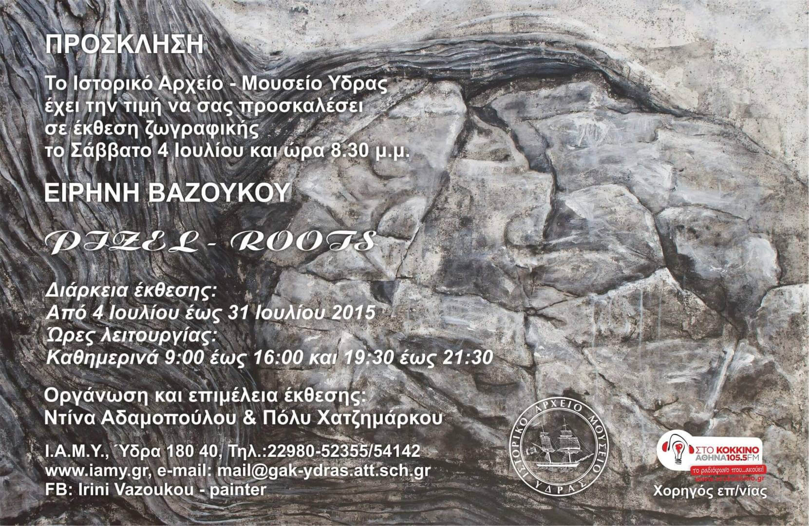 Το Σάββατο 4 Ιουλίου, στις 20.30, εγκαινιάζεται στο Ιστορικό Αρχείο- Μουσείο Ύδρας η ατομική έκθεση ζωγραφικής «Roots – Ρίζες» της Ειρήνης Βαζούκου.