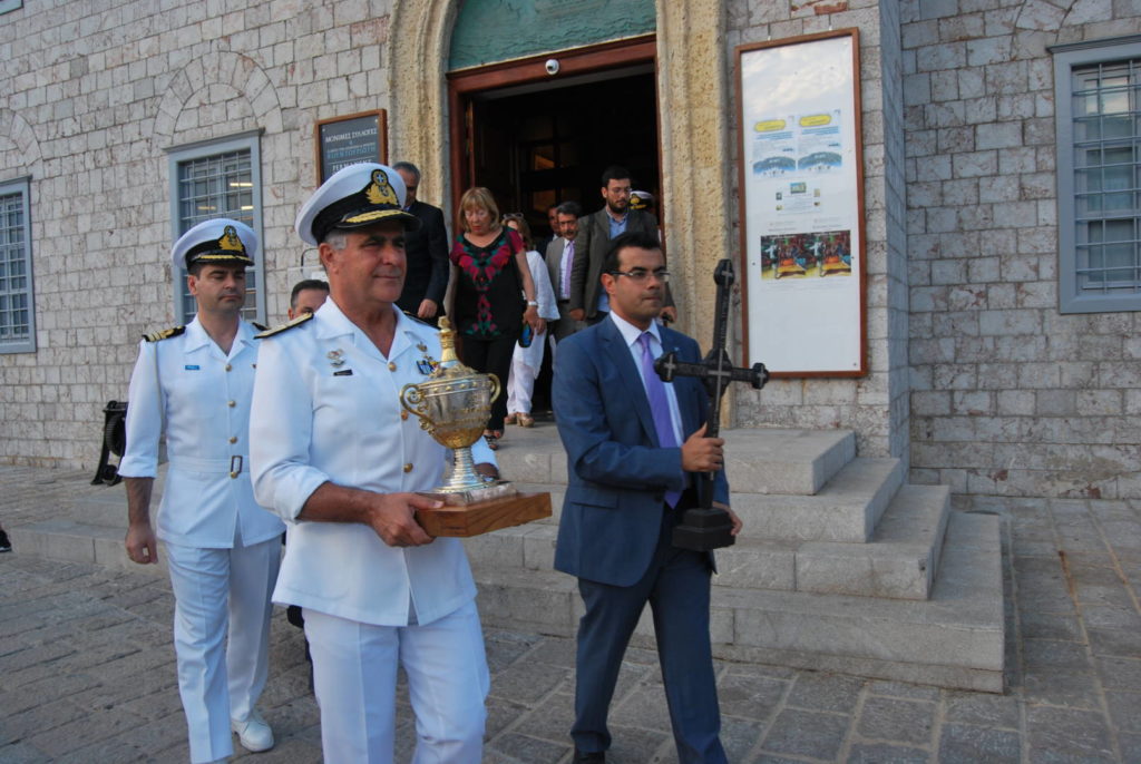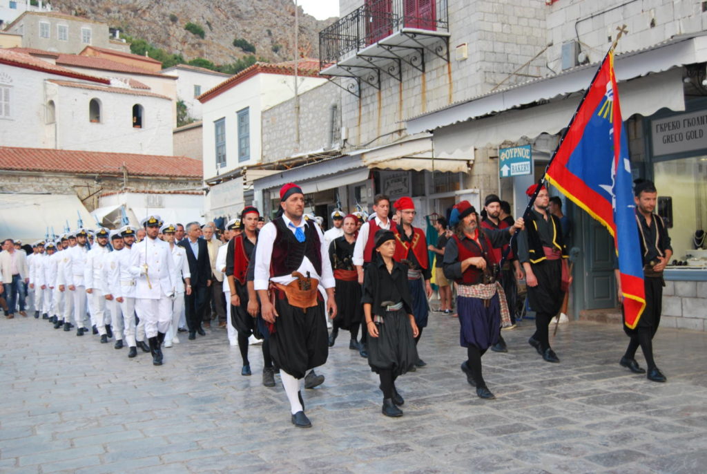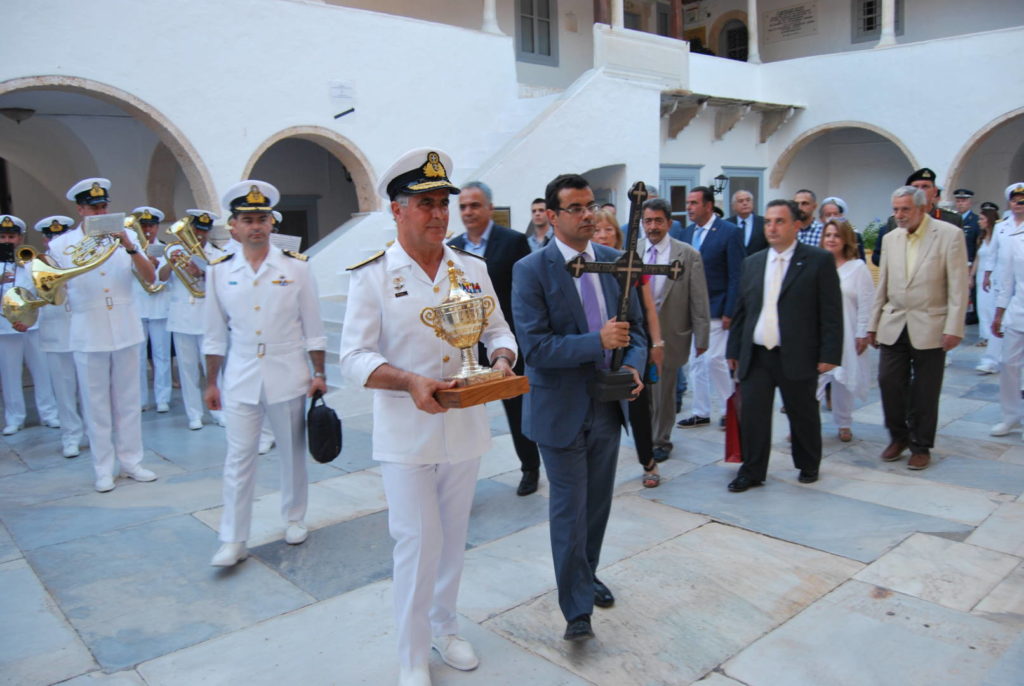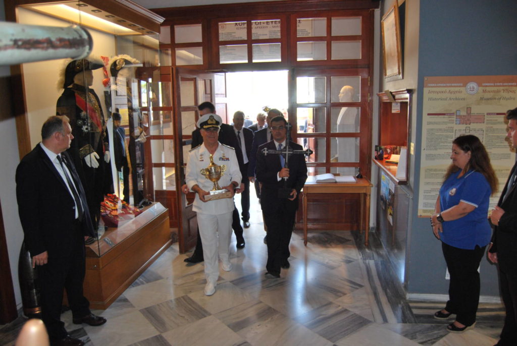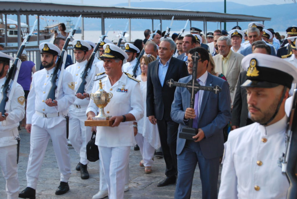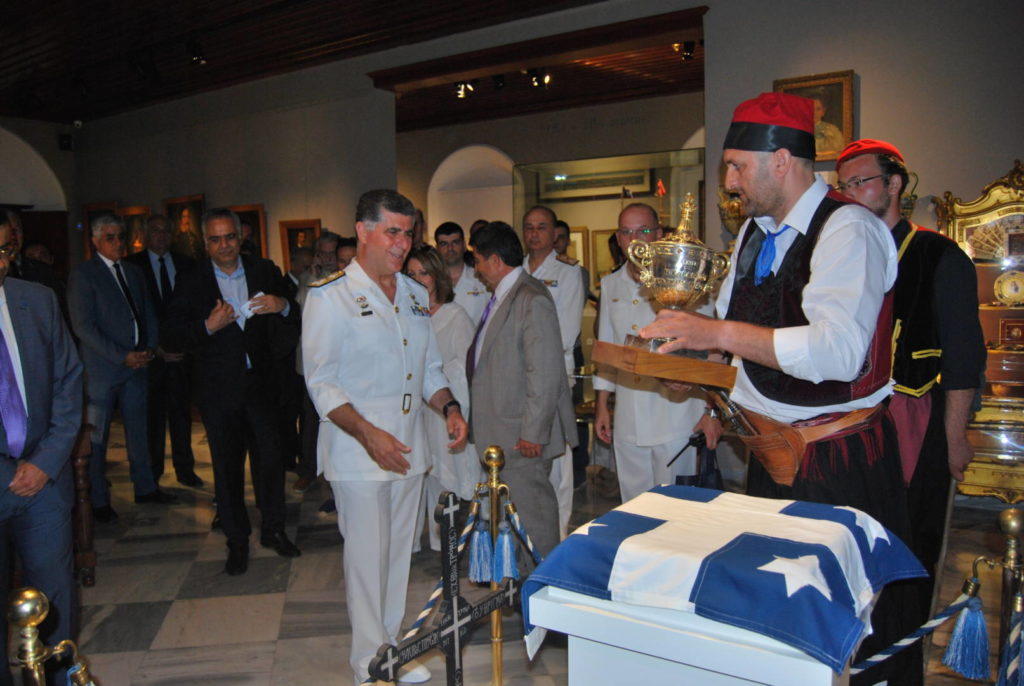 Απόδοση τιμών από τον Αρχηγό Στόλου Αντιναύαρχο Π.Ν. Ιωάννη Παυλόπουλο με τη Φρεγάτα “ΚΑΝΑΡΗΣ” στον Ανδριάντα του Ναυάρχου Ανδρέα Μιαούλη και στον Ναύαρχο Παύλο Κουντουριώτη