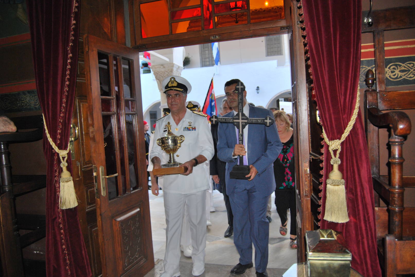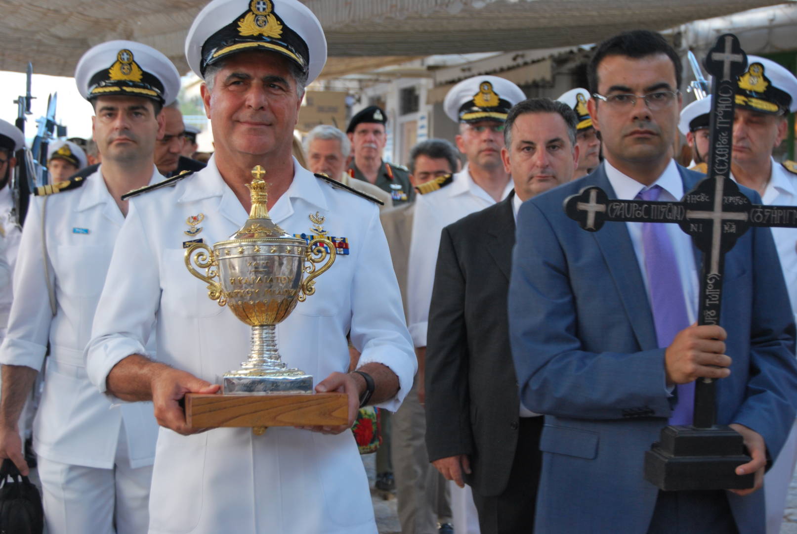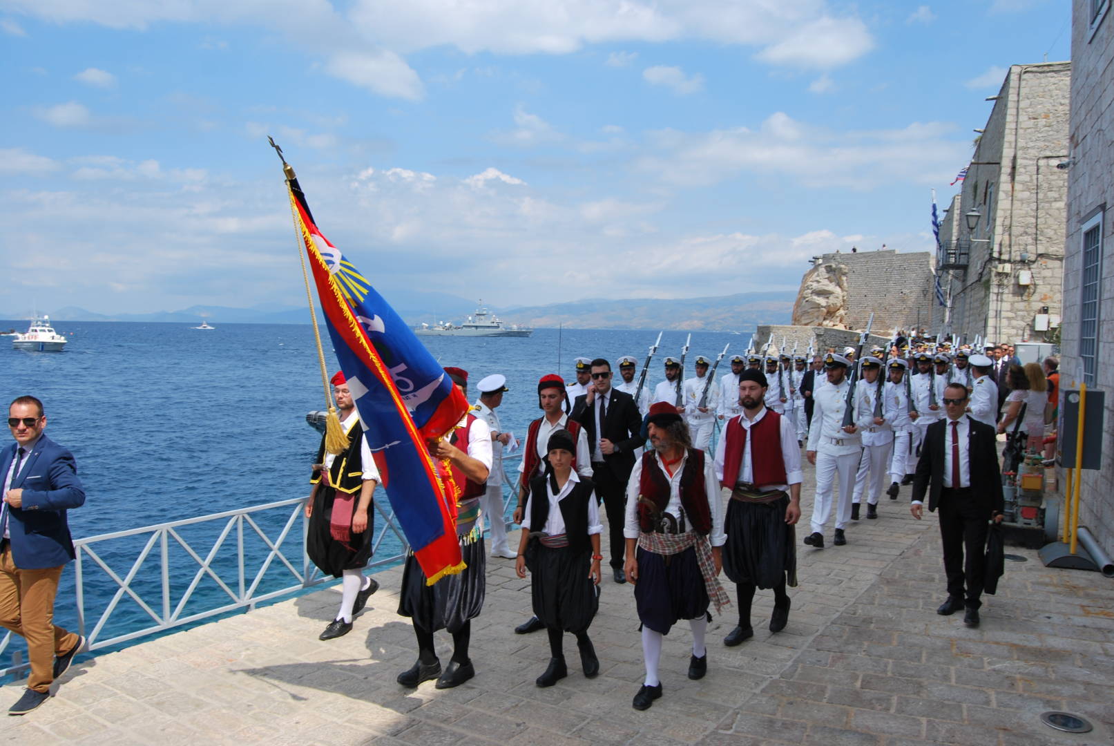 Απόδοση τιμών από τον Αρχηγό Στόλου Αντιναύαρχο Π.Ν. Ιωάννη Παυλόπουλο με τη Φρεγάτα “ΚΑΝΑΡΗΣ” στον Ανδριάντα του Ναυάρχου Ανδρέα Μιαούλη και στον Ναύαρχο Παύλο Κουντουριώτη