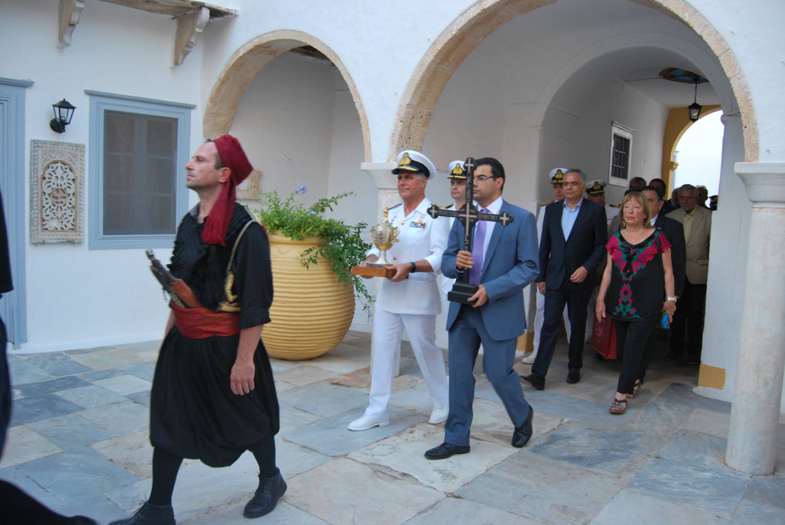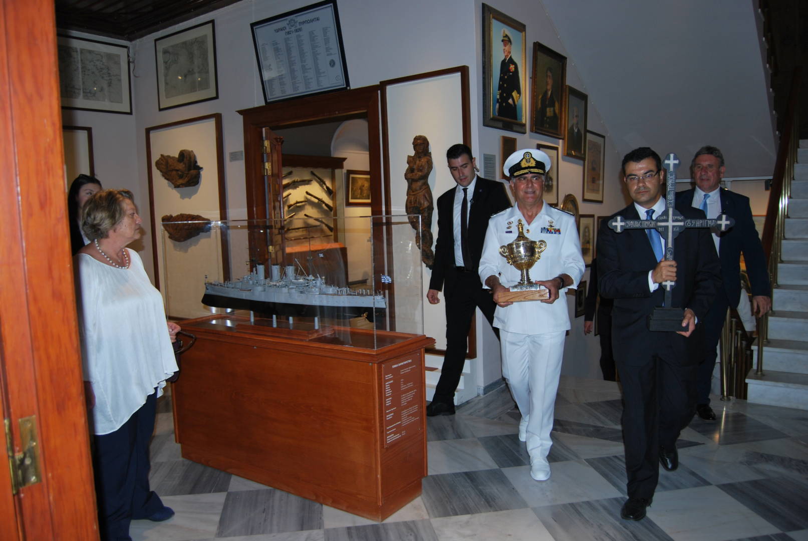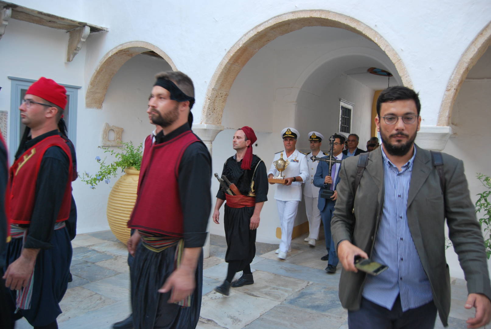 Απόδοση τιμών από τον Αρχηγό Στόλου Αντιναύαρχο Π.Ν. Ιωάννη Παυλόπουλο με τη Φρεγάτα “ΚΑΝΑΡΗΣ” στον Ανδριάντα του Ναυάρχου Ανδρέα Μιαούλη και στον Ναύαρχο Παύλο Κουντουριώτη