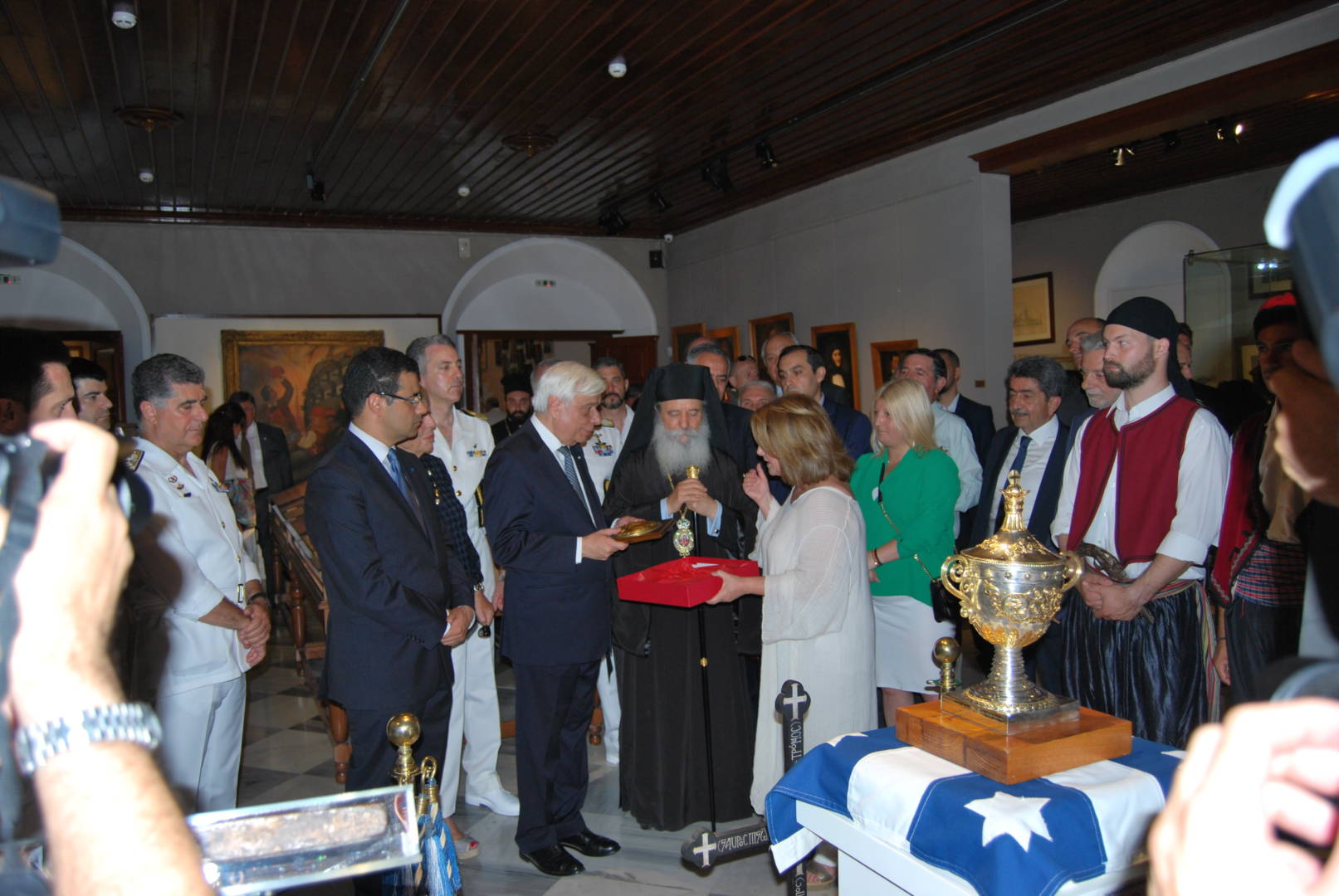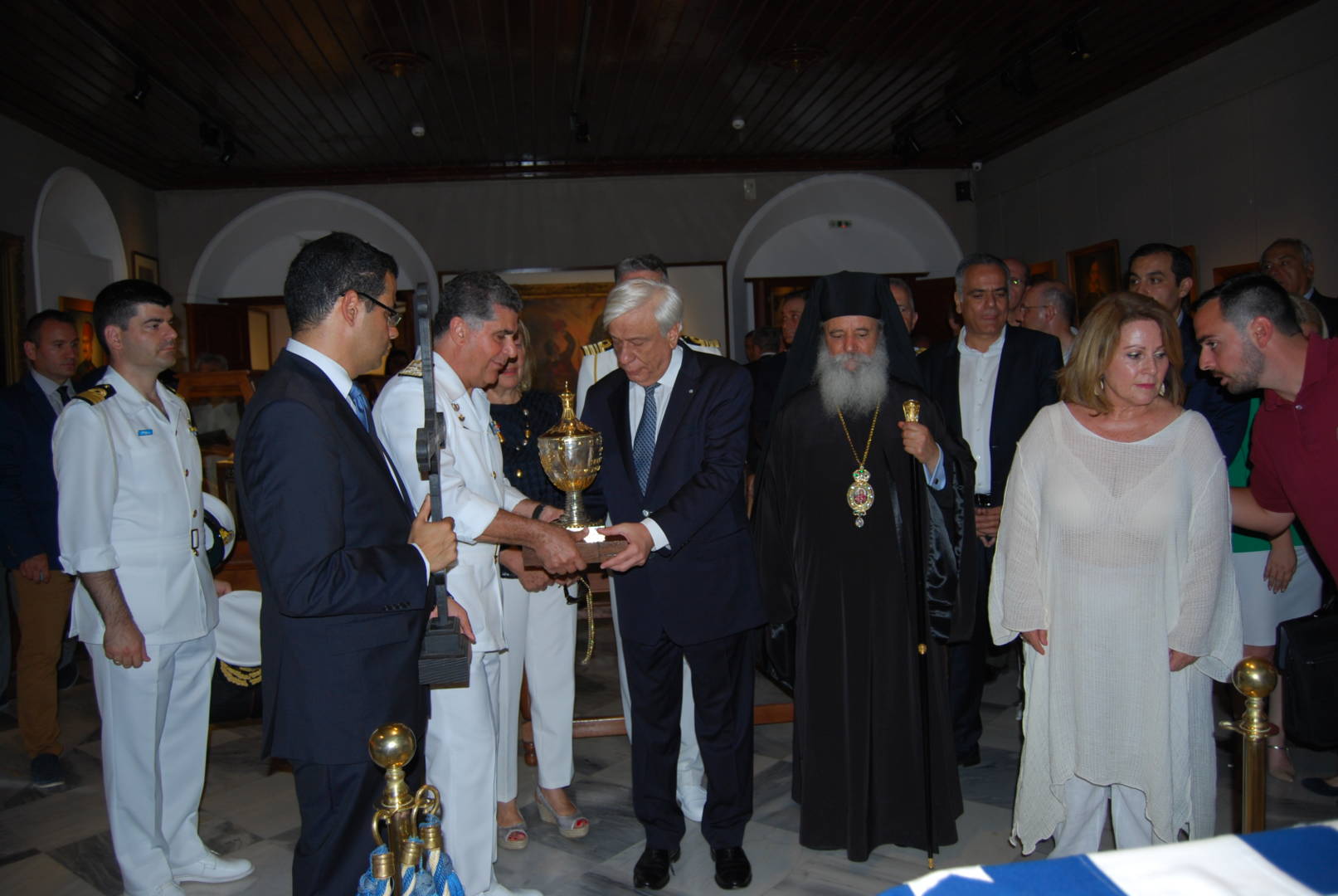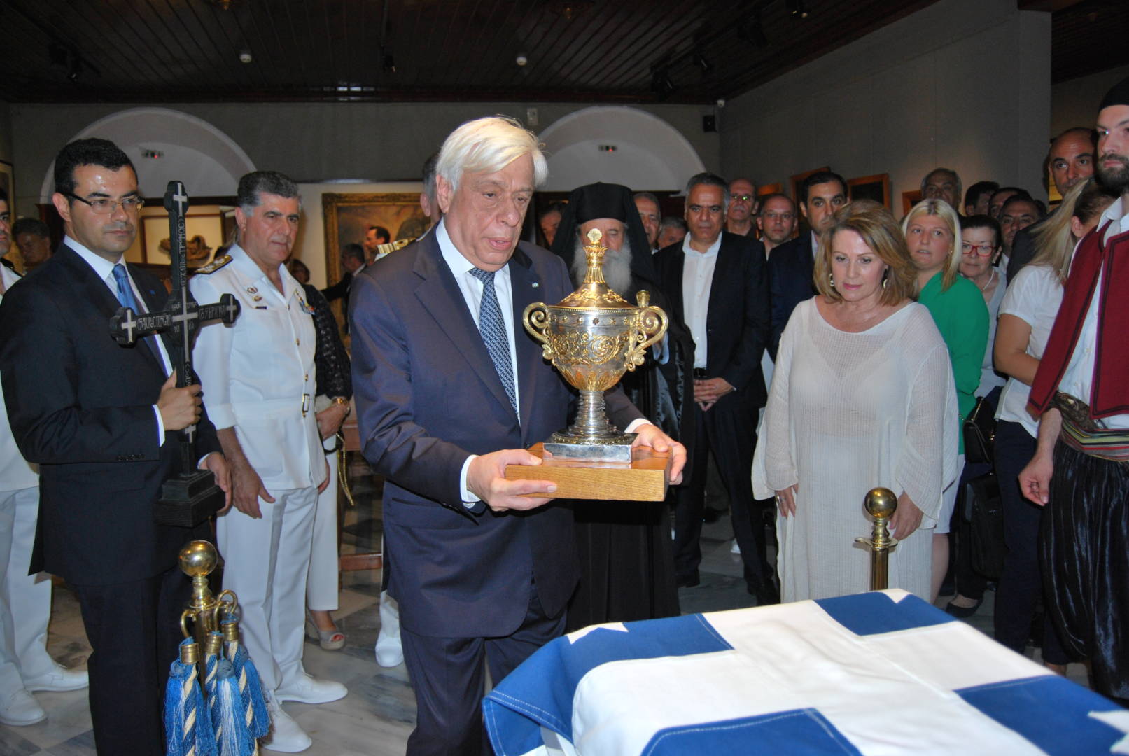 Επίσκεψη της Α.Ε. του Προέδρου της Δημοκρατίας κ. Προκόπη Παυλόπουλου,στα πλαίσια των εορτασμών των Μιαουλείων 2018, στη διάρκεια της τελετής επιστροφής της καρδιάς, του Ναυάρχου  Ανδρέα Μιαούλη στο  IAMY