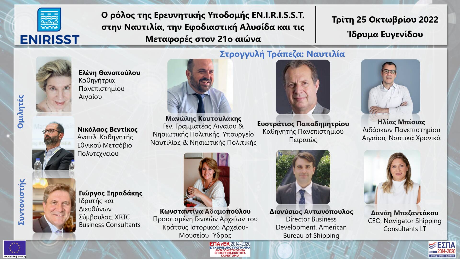 Συμμετοχή σε Συνέδριο με θέμα «Ο ρόλος της ερευνητικής Υποδομής EN.I.R.I.S.S.T. στη Ναυτιλία, την Εφοδιαστική Αλυσίδα και τις Μεταφορές στον 21ο αιώνα» και υπογραφή μνημονίου συνεργασίας μεταξύ ΓΑΚ Ύδρας και Πανεπιστημίου Αιγαίου