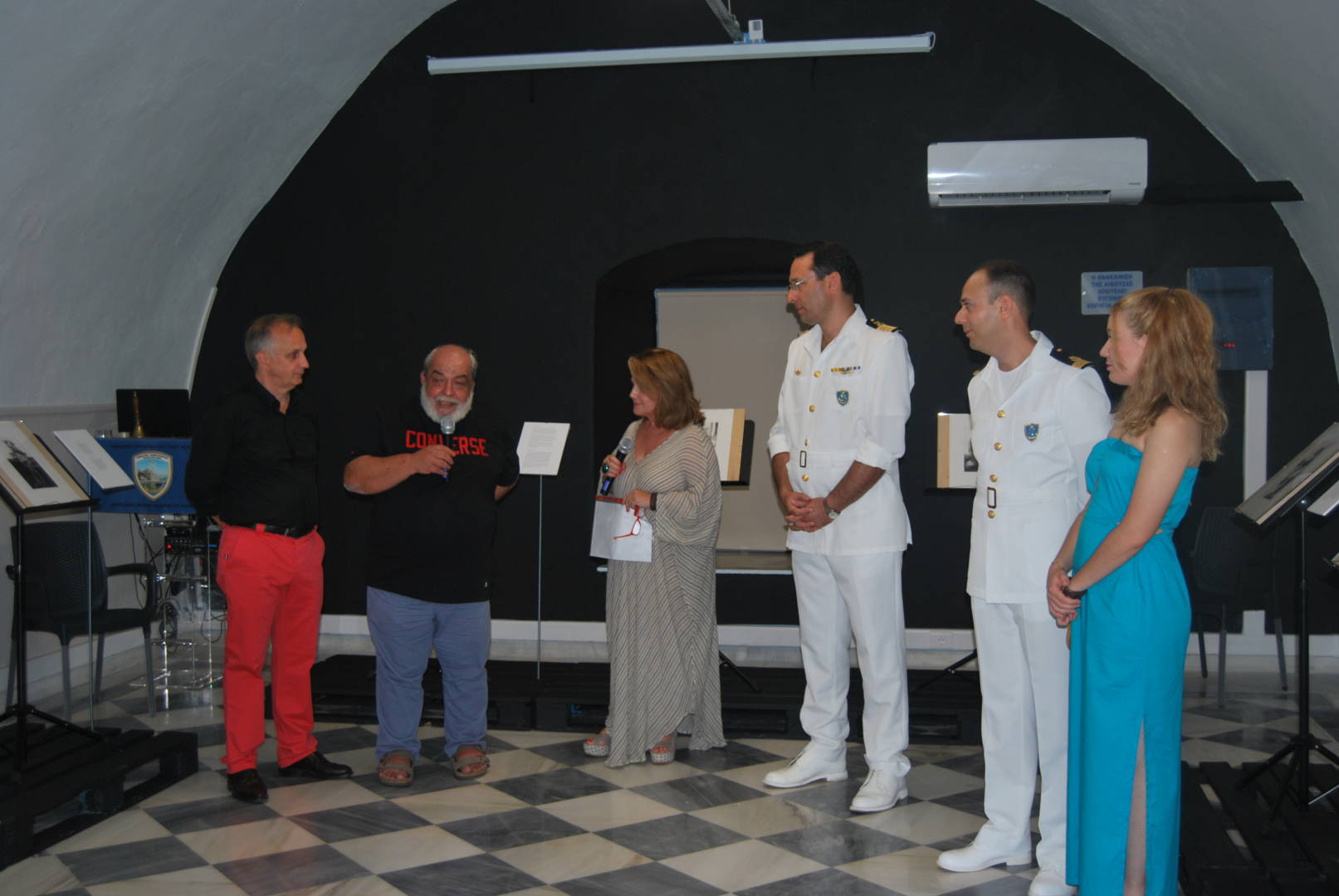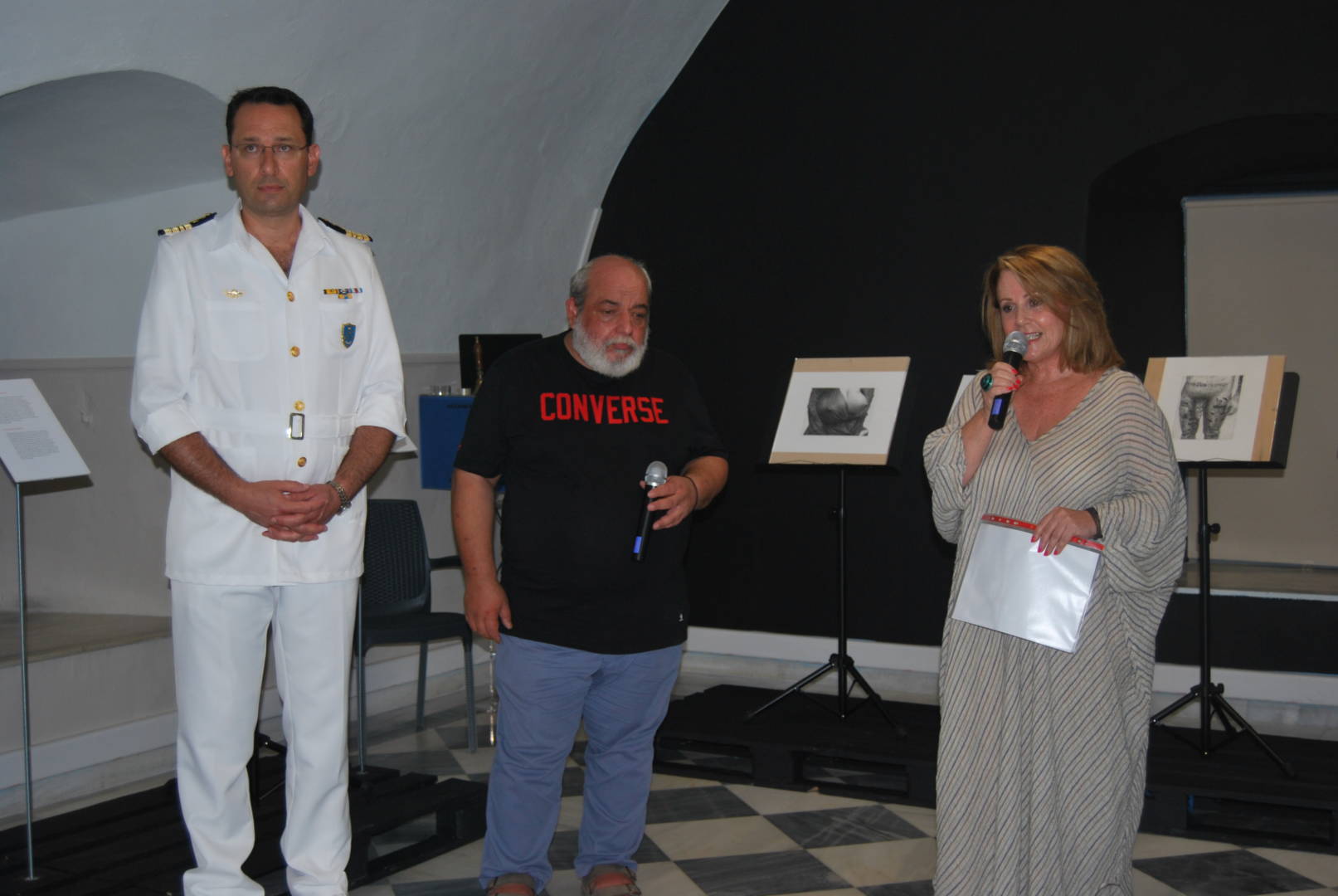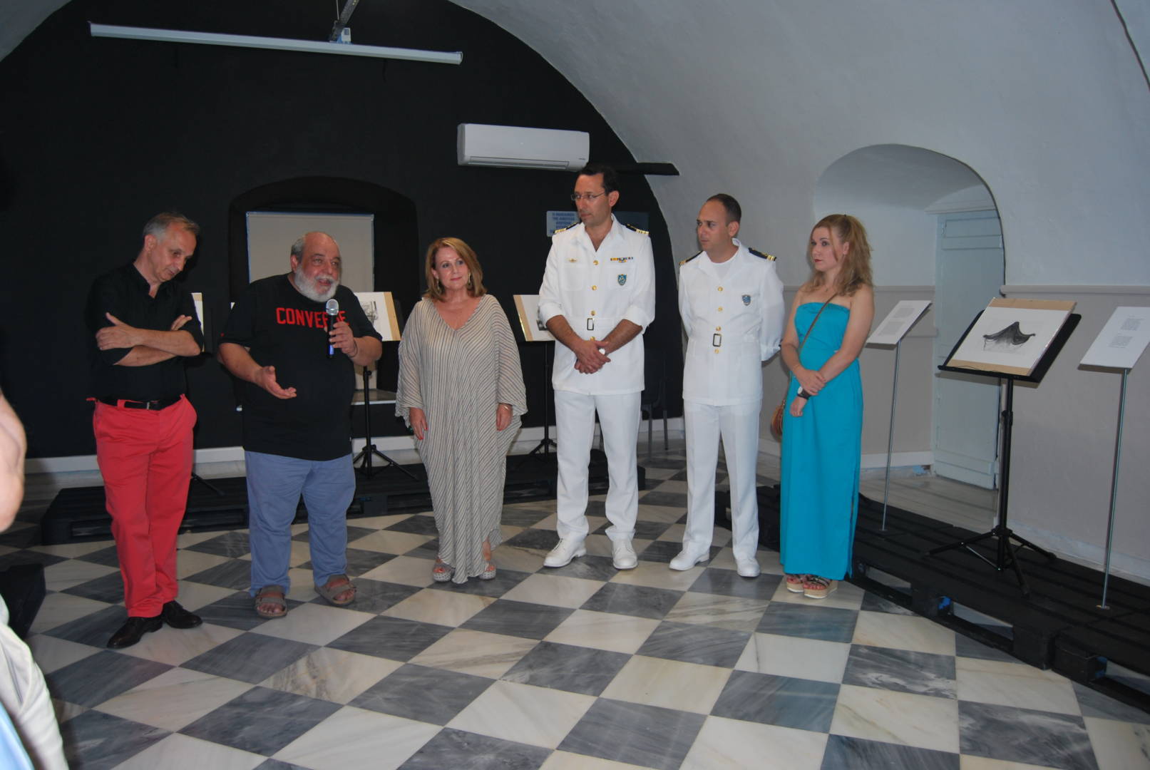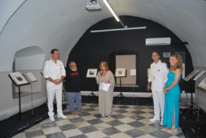 Στα εγκαίνια της έκθεσης, που θα διαρκέσει μέχρι τις 19 Αυγούστου, μίλησε η Διευθύντρια του ΙΑΜΥ, Ντίνα Αδαμοπούλου που καλωσόρισε Γάλλους και Έλληνες επισκέπτες και αναφέρθηκε πληροφοριακά, ειδικά για τους Γάλλους προσκεκλημένους, στην ίδρυση και την ιστορία της φιλοξενούσας την έκθεση Α.Ε.Ν. Ύδρας, της πρώτης και αρχαιότερης παγκοσμίως Ναυτικής Σχολής.