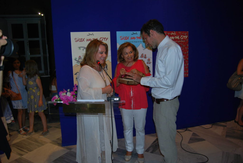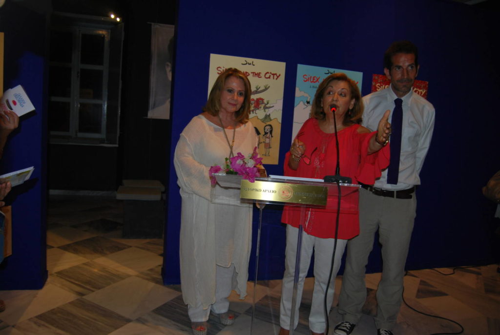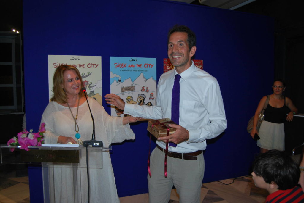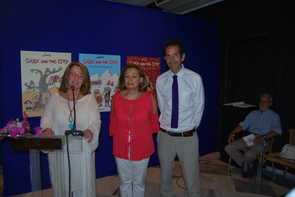 Στα εγκαίνια της έκθεσης η Διευθύντρια του Μουσείου Ύδρας Ντίνα Αδαμοπούλου, αφού καλωσόρισε τους πολυπληθείς επισκέπτες, Έλληνες και Γάλλους, παρουσίασε στο κοινό το προφίλ του JUL. Στην συνέχεια το λόγο έλαβε η φίλη εκπαιδευτικός κ. Θεοδώρα Σωτηροπούλου αναφέροντας ότι τα κόμικς του προσφέρουν διασκέδαση αλλά και γνώση. Επίσης αναφέρθηκε και στην μακρόχρονη φιλία της με την οικογένεια του JUL αλλά και στην ιδιαίτερη αγάπη του Καλλιτέχνη για την Ελλάδα και κάθε τι ελληνικό.