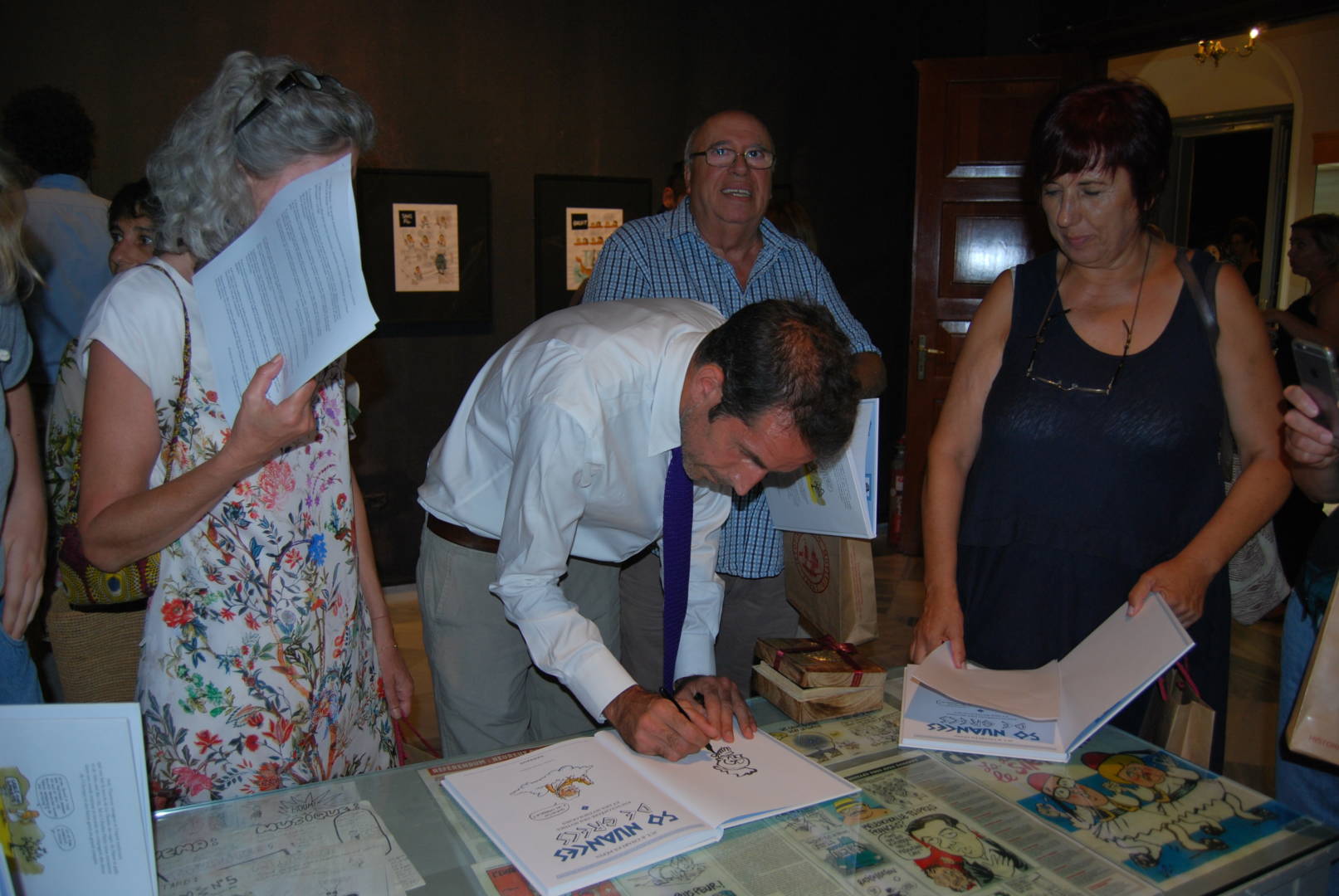 Οι επισκέπτες θαύμασαν από κοντά την εξαιρετική δουλειά του JUL, όσοι δε από αυτούς αγόρασαν το τελευταίο του βιβλίο (που διατέθηκε στο κοινό με αφορμή την συγκεκριμένη Έκθεση) με τον τίτλο “50 NYANCES DE GREKS ” («50 Αποχρώσεις των Ελλήνων») λάμβαναν δική του αφιέρωση με ένα μοναδικό σκίτσο που δημιουργούσε ο Καλλιτέχνης εκείνη την στιγμή.