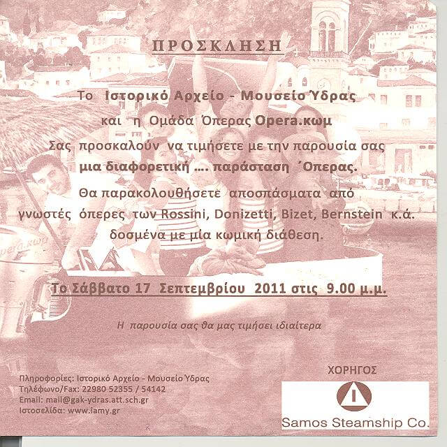 1ο φεστιβάλ κλασικής μουσικής Ύδρας.