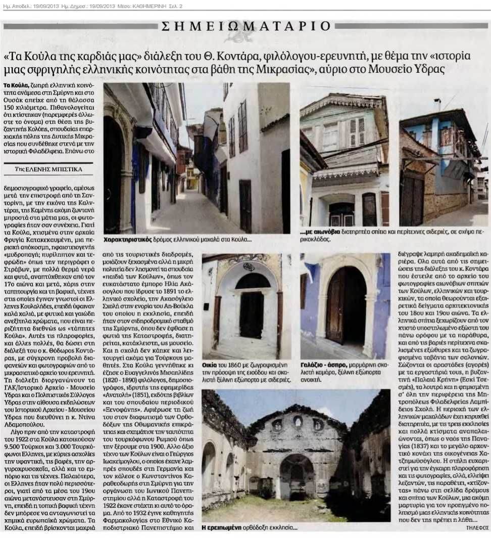 Ομιλία «Τα Κούλα της καρδιάς μας: η ιστορία μιας σφριγηλής ελληνικής κοινότητας στα βάθη της Μικρασίας».
