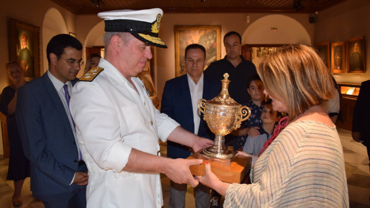Η Διευθύντρια του Ι.Α.Μ.Υ. Κυρία Ντίνα Αδαμοπούλου παρέδωσε τη Λήκυθο στον εκπρόσωπο του Αρχηγού του Γενικού Επιτελείου Ναυτικού, Αρχιπλοίαρχο Π.Ν. κ. Ιωάννη Λόντο, ενώ παράλληλα παρέδωσε το Σταυρό στο Δήμαρχο Ύδρας κ. Γιώργο Κουκουδάκη.
