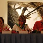 - Από αριστερά: Η συγγραφέας κα. Φούλα Πισπιρίγκου, η Προϊσταμένη του ΙΑΜΥ κα. Κωνσταντίνα Αδαμοπούλου και ο Δημοσιογράφος της Ε.Ρ.Τ. Προκόπης Δούκας