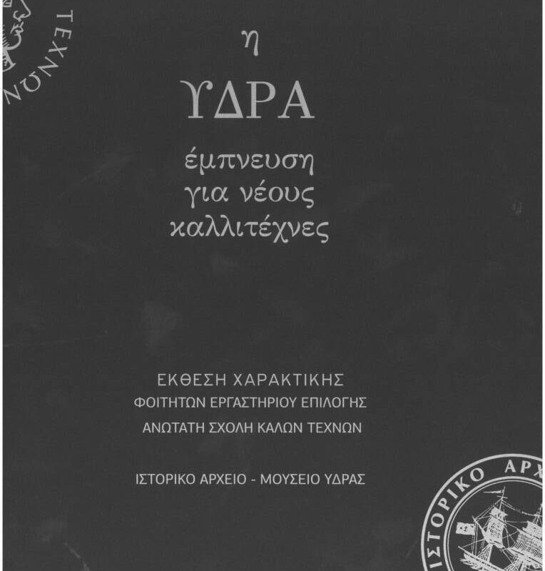 Κατάλογος έκθεσης χαρακτικής με τίτλο: “η ΥΔΡΑ έμπνευση για νέους καλλιτέχνες”.