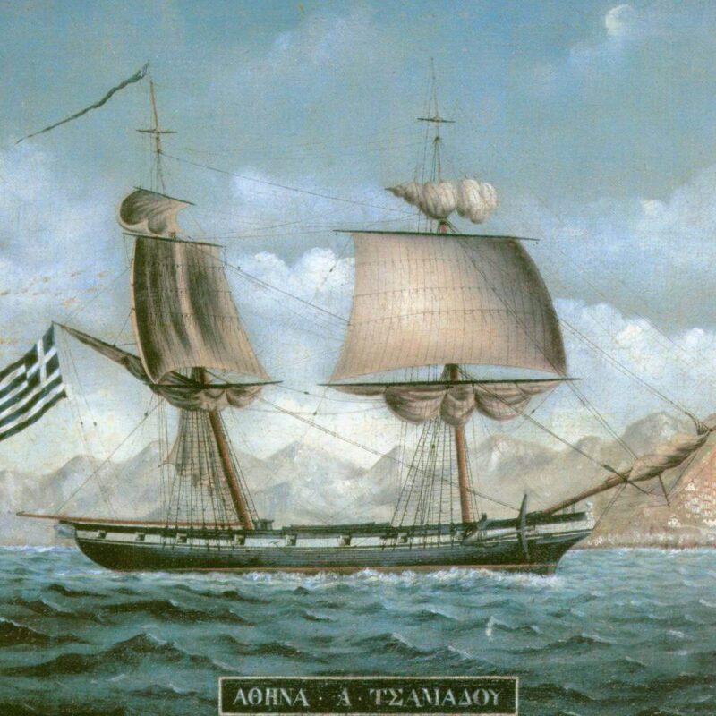 Κάρτ Ποστάλ “Το μπρίκι Αθηνά (ο γνωστός Άρης), του Αναστ. Τσαμαδού.”