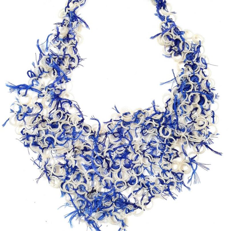 Χειροποίητο πλεκτό κολιέ δίχτυ με κλωστή και λευκές χάντρες
