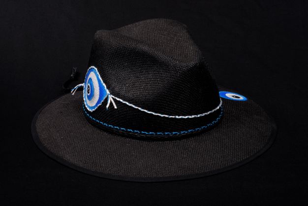 Χειροποίητο Ψάθινο καπέλο τύπου Panama ζωγραφισμένο στο χέρι, με σχέδιο μάτι.