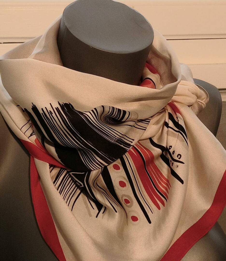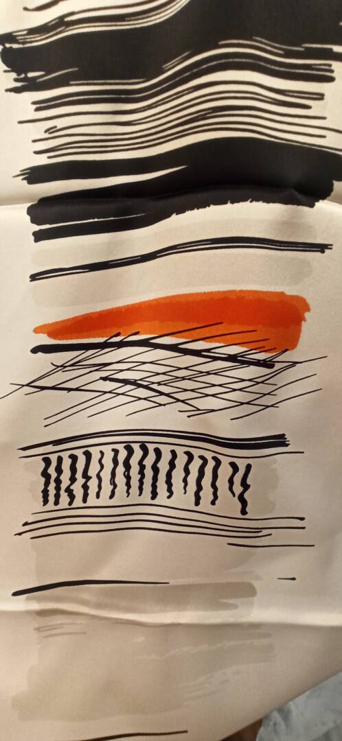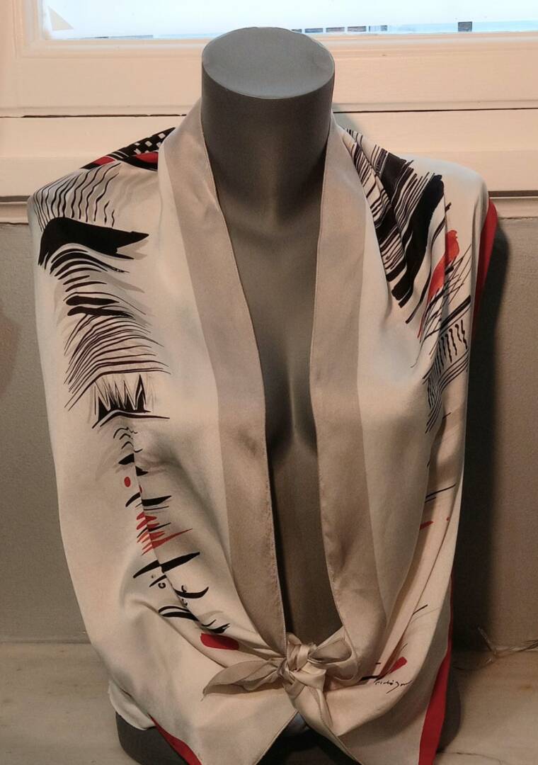 Μαντήλι με ελεύθερές γραφές, εμπνευσμένες από αρχαία ελληνικά αγγεία.
