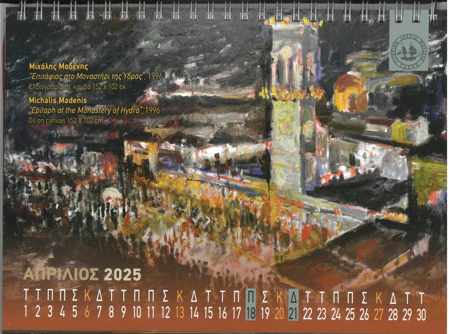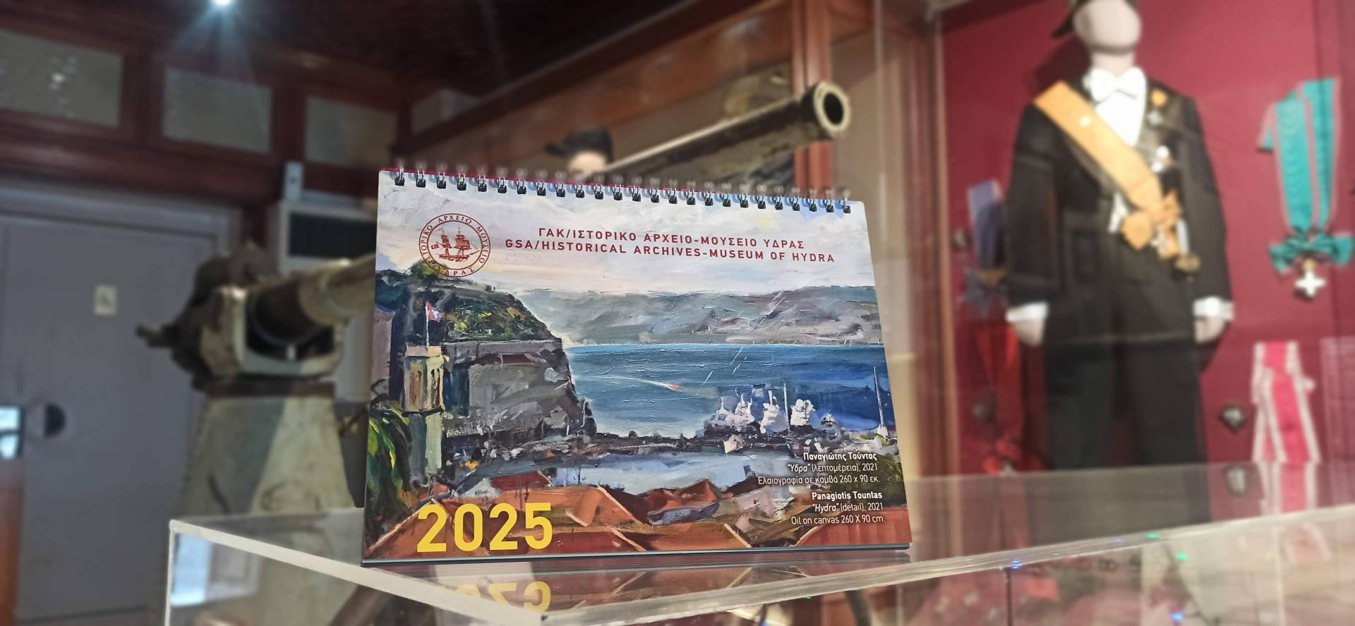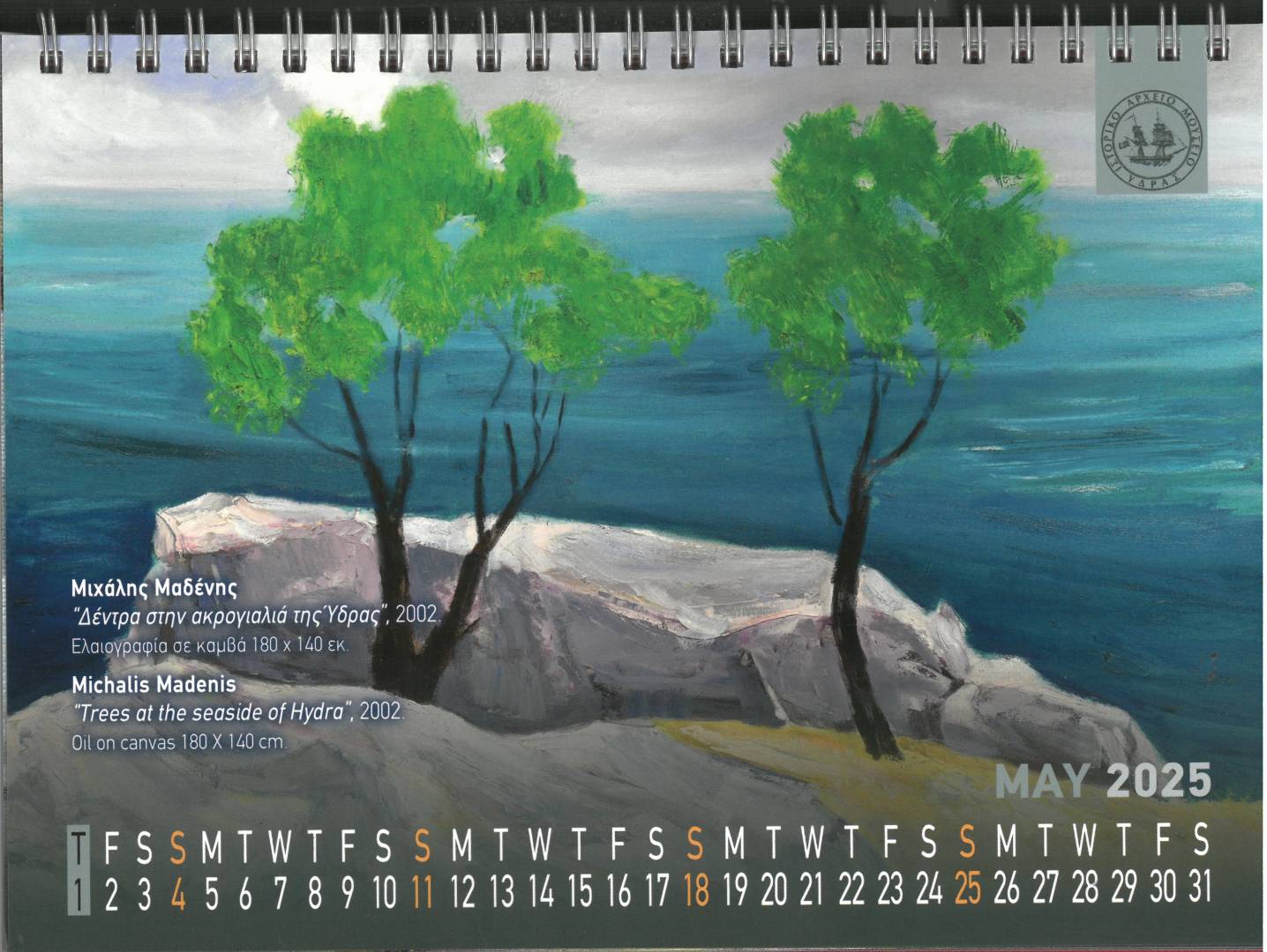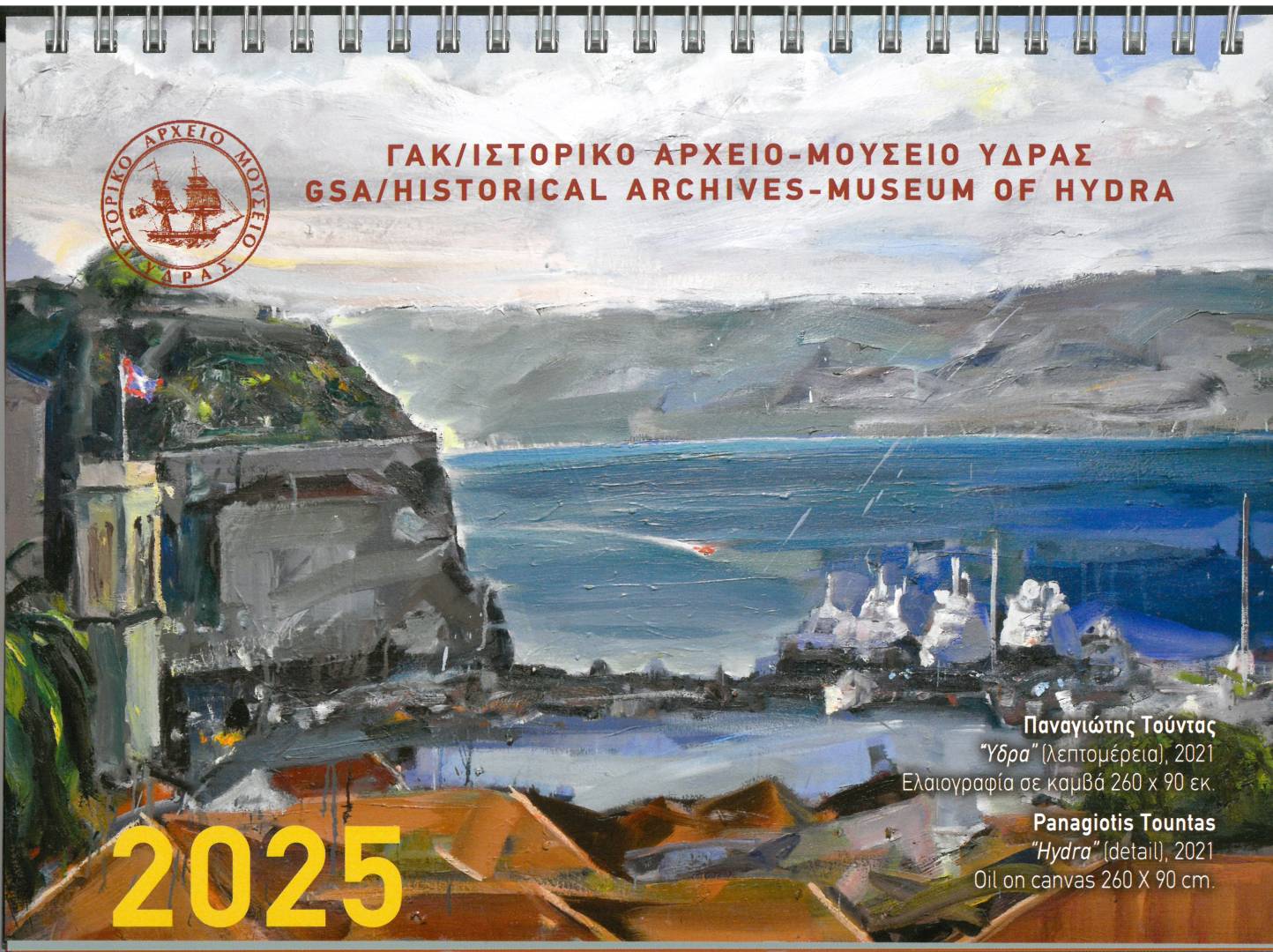 Tο φετινό ετήσιο ημερολόγιό μας, το αφιερώσουμε στην προβολή της Συλλογής Σύγχρονης Τέχνης του Ιστορικού μας Αρχείου και Μουσείου και πιο συγκεκριμένα σε καλλιτέχνες που παρουσιάζουν στα έργα τους το νησί μας, την Ύδρα .