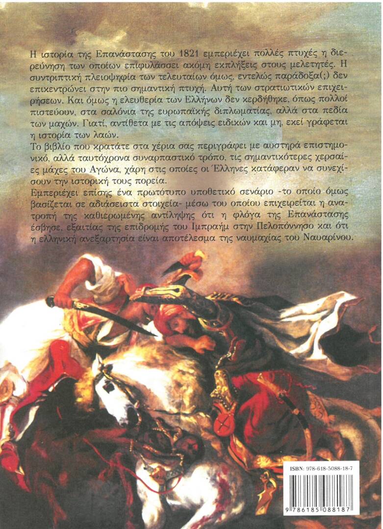 Η ιστορία της Επανάστασης του 1821 εμπεριέχει πολλές πτυχές η διερεύνηση των οποίων επιφυλάσσει ακόμη εκπλήξεις στους μελετητές. Η συντριπτική πλειοψηφία των τελευταίων όμως, εντελώς παράδοξα (;) δεν επικεντρώνει στην πιο σημαντική πτυχή. Αυτή των στρατιωτικών επιχειρήσεων. Και όμως η ελευθερία των Ελλήνων δεν κερδήθηκε, όπως πολλοί πιστεύουν, στα σαλόνια της ευρωπαϊκής διπλωματίας, αλλά στα πεδία των μαχών. Γιατί, αντίθετα με τις απόψεις ειδικών και μη, εκεί γράφεται η ιστορία των λαών.