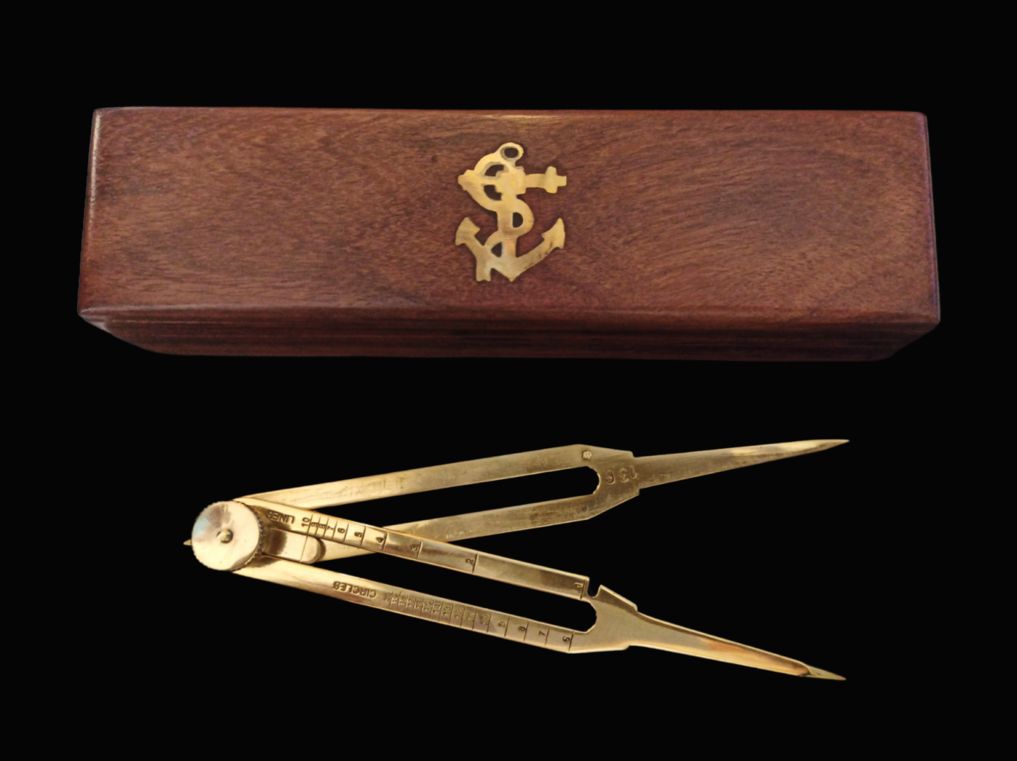 Metal Nautical instrument, V-shaped (like compass) where we count distances on nautical charts .
