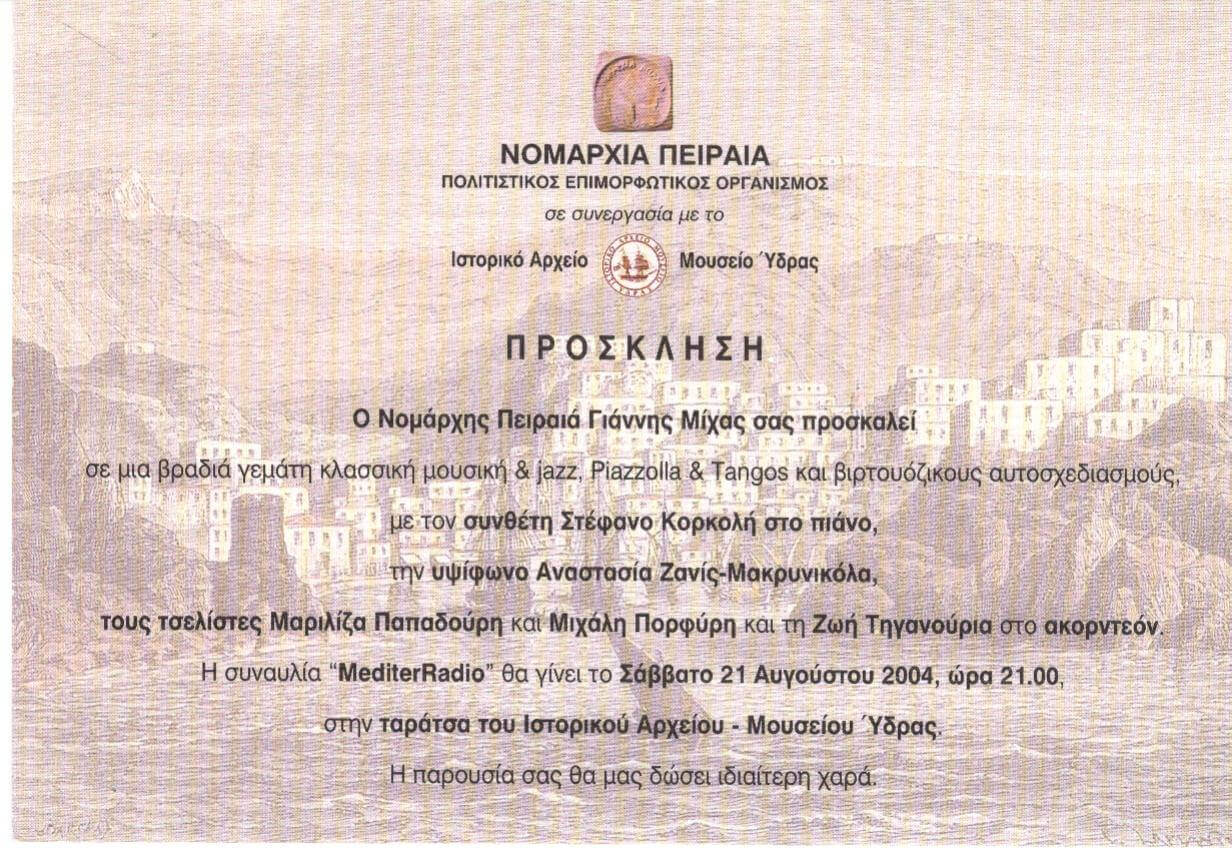 Ποιητική Βραδιά με τις ηθοποιούς Μαριέττα Ριάλδη-Νίτα Παγώνη3 Νοεμβρίου, 2014Έκθεση ζωγραφικής: Γιώργος Μαυροϊδης Ένα “γίγνεσθαι” κεραυνοβόλου καταφάσεως3 Νοεμβρίου, 2014 Published by efstraatios at 3 Νοεμβρίου, 2014 Categories 2004 Μουσικές Εκδηλώσεις Μουσικη Αρχειο Tags Σάββατο 21 ΑΥΓΟΥΣΤΟΥ 2004 Σε συνεργασία με τη ΝΟΜΑΡΧΙΑ ΠΕΙΡΑΙΑ Share0 efstraatios Related posts19 Αυγούστου, 2024ΡΕΣΙΤΑΛ ΠΙΑΝΟΥ ΤΟΥ ΣΗΜΑΝΤΙΚΟΥ ΕΛΛΗΝΑ BIΡΤΟΥΟΖΟΥΠΑΝΑΓΙΩΤΗ ΤΡΟΧΟΠΟΥΛΟΥRead more26 Σεπτεμβρίου, 2022ΣΥΝΑΥΛΙΑ ΕΛΕΝΗΣ ΒΙΤΑΛΗ ΚΑΙ ΠΑΝΑΓΙΩΤΗ ΜΑΡΓΑΡΗ ΣΤΟ ΙΑΜΥRead more14 Σεπτεμβρίου, 2022Η Ελένη Βιτάλη και ο Παναγιώτης Μάργαρης στο ΙΑΜΥRead more Αφήστε μια απάντηση Ακύρωση απάντησηςΓια να σχολιάσετε πρέπει να συνδεθείτε.