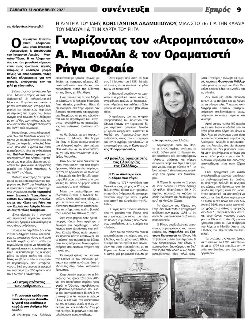 Συνέντευξη της Διευθύντριας του Ι.Α.Μ.Υ. στην Εφημερίδα “ΕΜΠΡΟΣ” της Μυτιλήνης